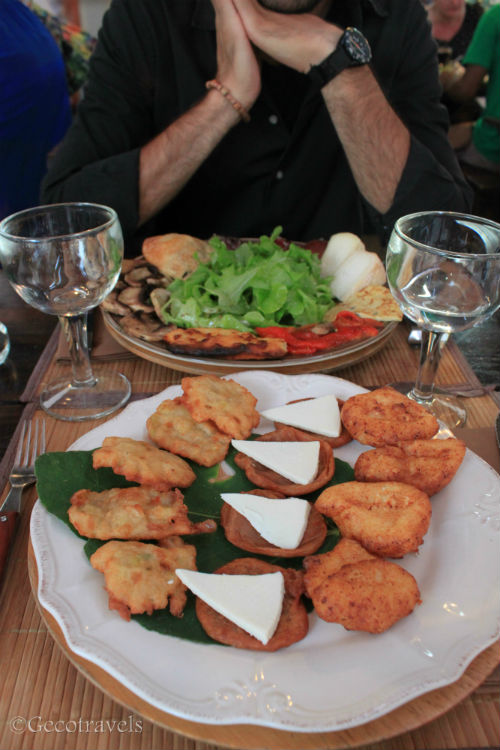 Siamo stati a cena fuori una volta sola, ci siamo concessi questo lusso per assaggiare la cucina corsa. Il ristorante in cui siamo stati si chiama U Spuntinu, trovate anche ottime recensioni su Tripadvisor. Camerieri cortesi e molto disponibili nello spiegarci i piatti, pur non conoscendo l’italiano o l’inglese (noi con il francese non ce la cavavamo un granché). Lo stile del ristorante è davvero delizioso, con stoviglie in legno e tovagliette di bambù (sono fissata con l’ecologia 😉 ). Il prezzo del conto non è stato bassissimo, ma comunque rientra nella media degli standard corsi. Circa €25 a testa per due piatti di frittura con pastella di farina di castagne e formaggi tipici, una bottiglia d’acqua e una mousse al cioccolato con confettura di arance, da assaggiare assolutamente!